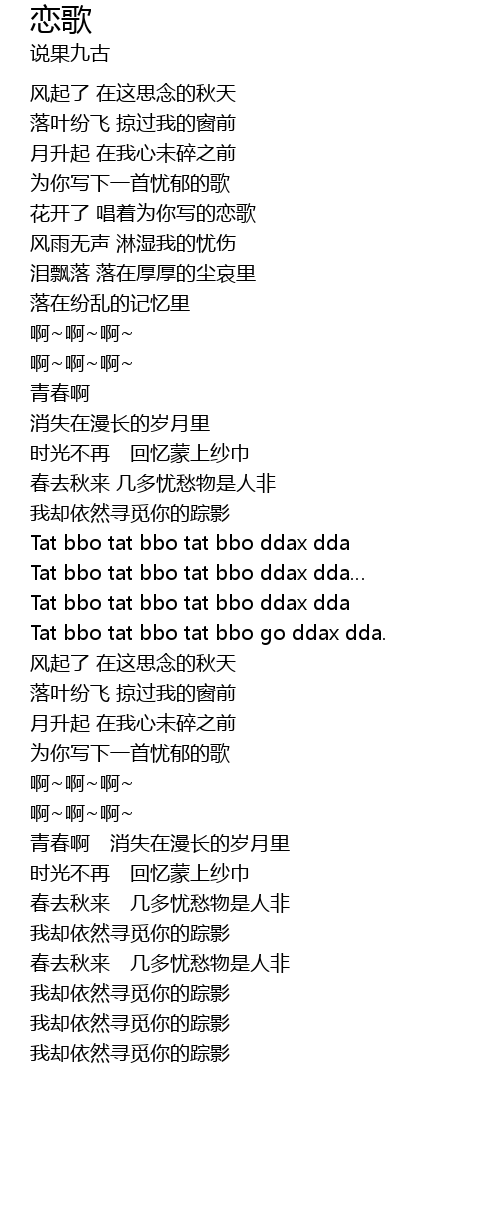 | [00:40.55] | 为你写下一首忧郁的歌 |
