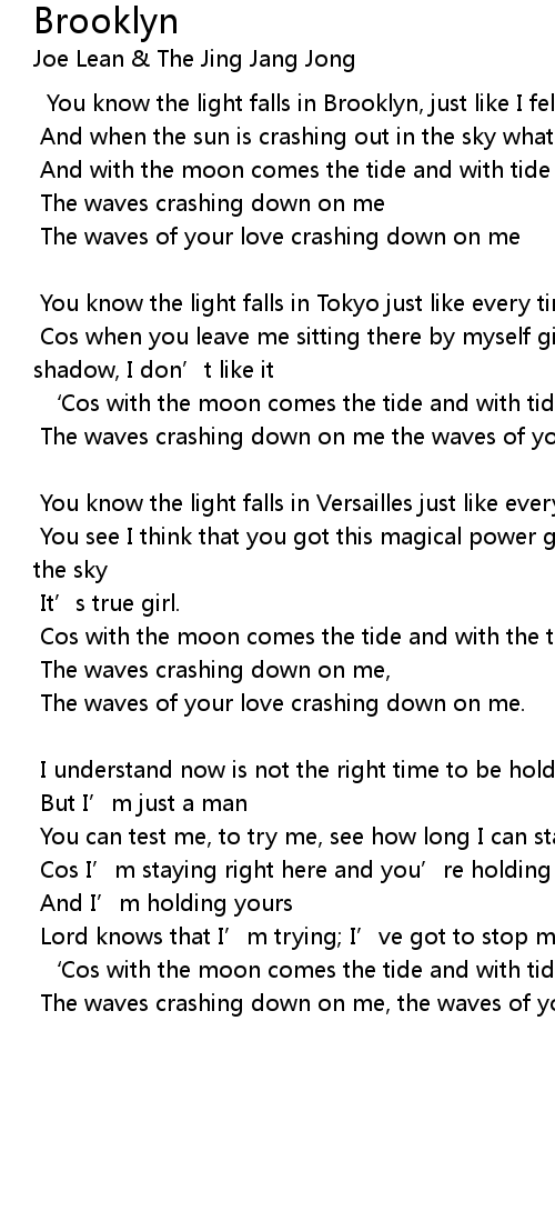 | You know the light falls in Brooklyn, just like I fell for you. | |