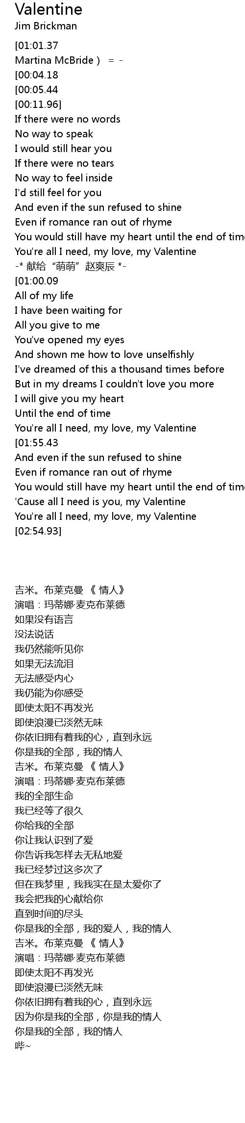 | [00:53.52] | You're all I need, my love, my Valentine |