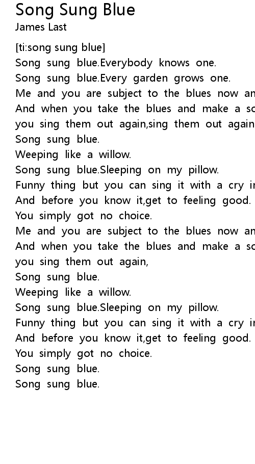[02:20.845] Song sung blue.Sleeping on my pillow.