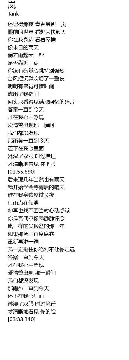| [02:43.110] | 岚一样的爱倾盆的那一年 |