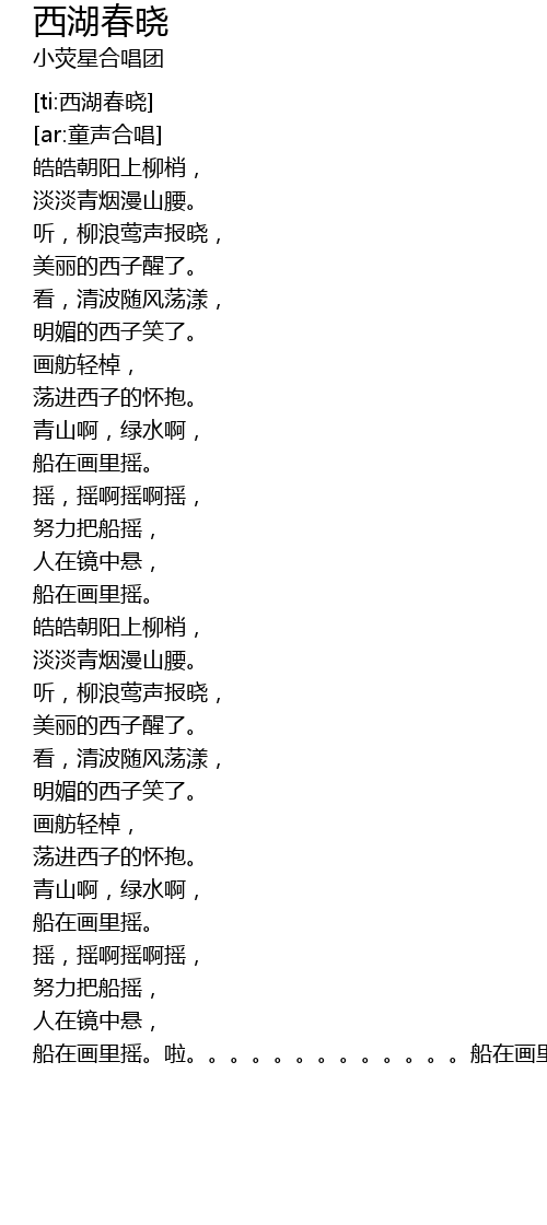 | [02:49.187] | 船在画里摇。啦。。。。。。。。。。。。。船在画里摇 |