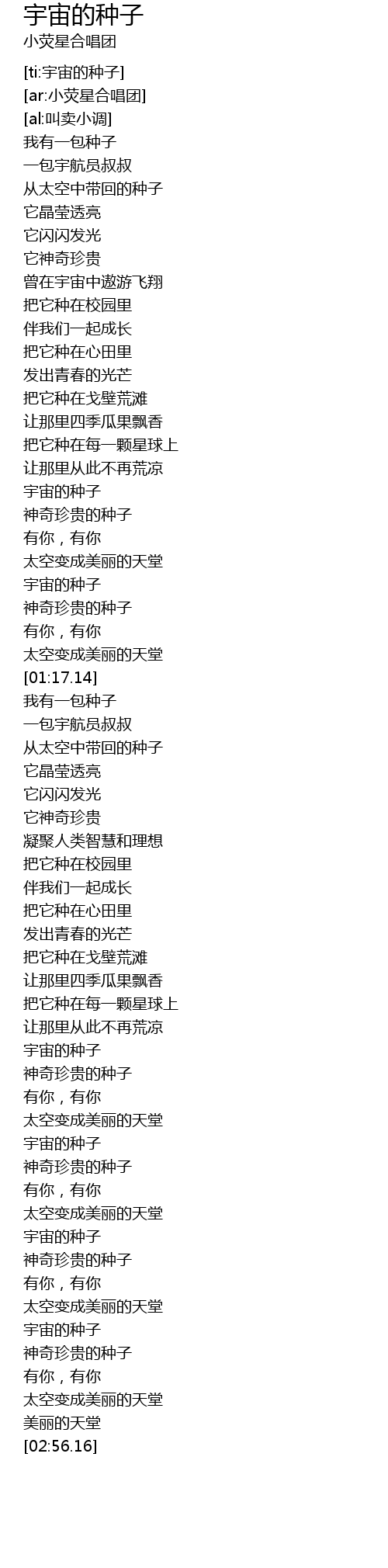 | [00:56.19] | yǔ zhòu de zhǒng zi |