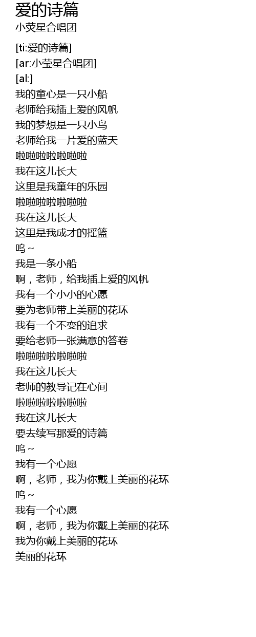 | [01:11.43] | 啊,老师,给我插上爱的风帆 |