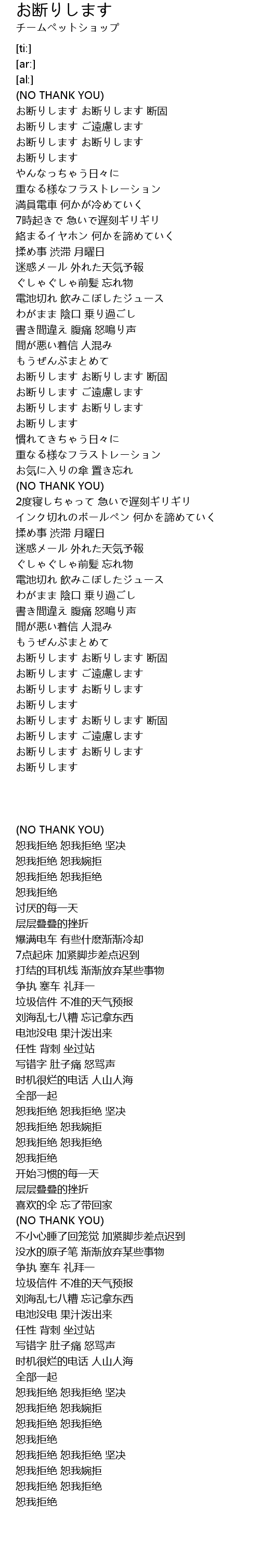 | [02:36.88] | お断りします お断りします 断固 |