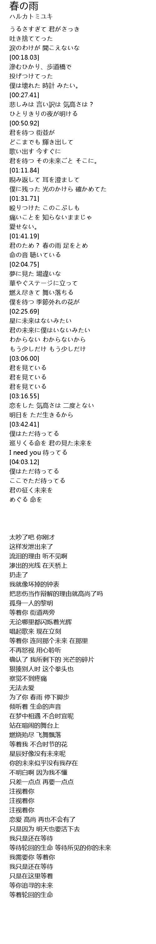 | [01:42.58] | 君のため? 春の雨 足をとめ |