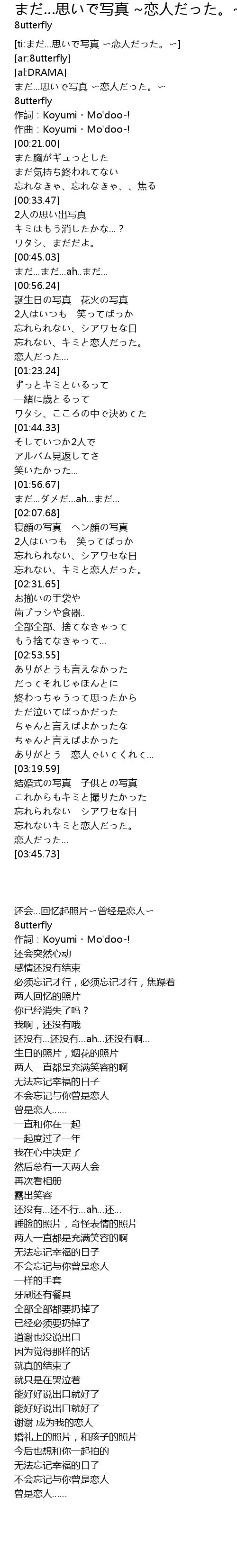 | [00:00.00] | まだ...思いで写真 〜恋人だった。〜 |