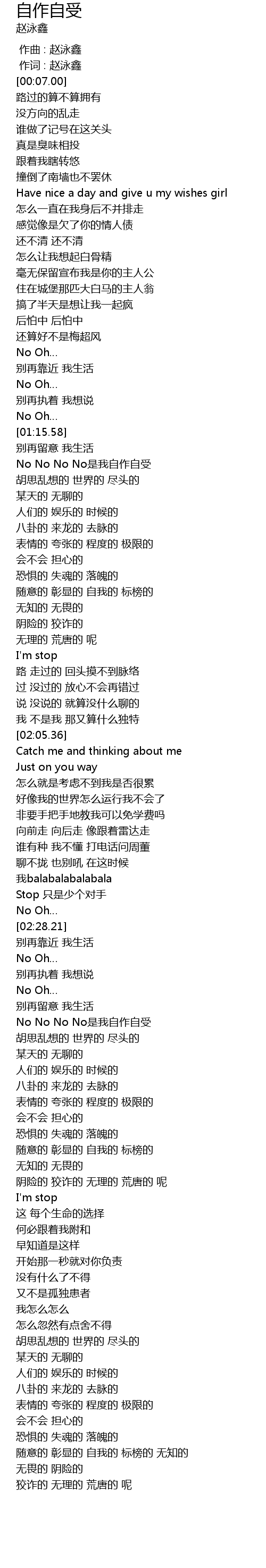 | [02:42.48] | No No No No shì wǒ zì zuò zì shòu |