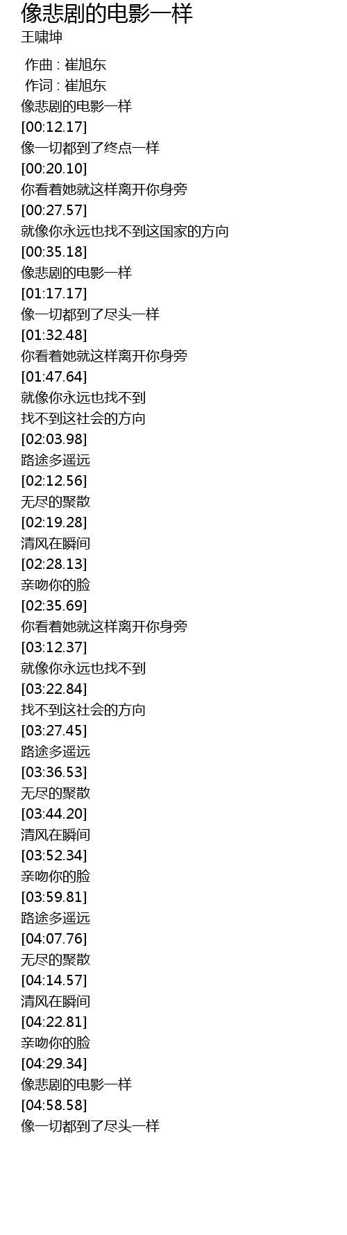 | [04:46.61] | xiàng bēi jù de diàn yǐng yí yàng |