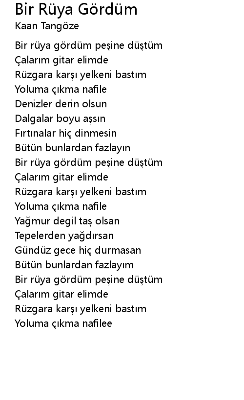 | [00:02.55] | Bir rü ya g rdü m pe ine dü tü m |