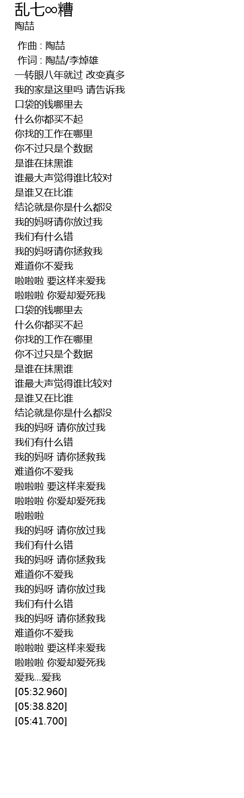 | [03:33.70] | wǒ de mā ya qǐng nǐ zhěng jiù wǒ |