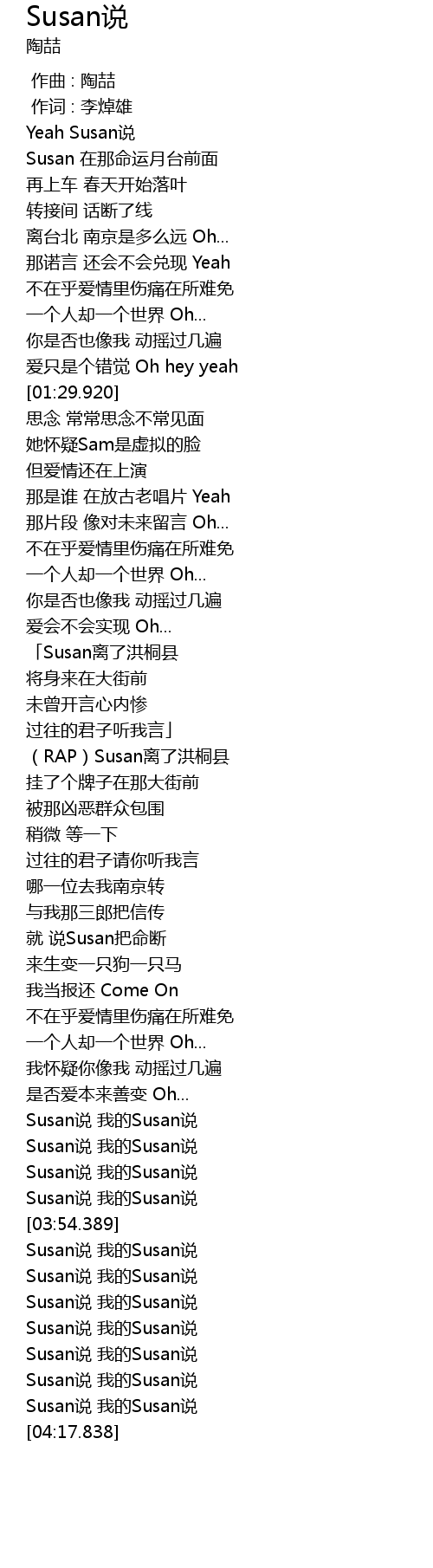 | [03:51.289] | Susan shuō wǒ de Susan shuō |