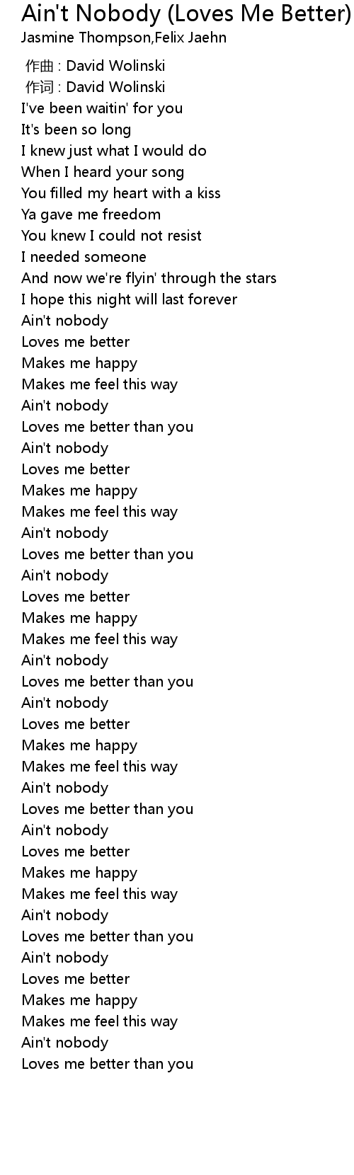 | Song | Ain't Nobody (Loves Me Better) - The Golden Boy Remix |