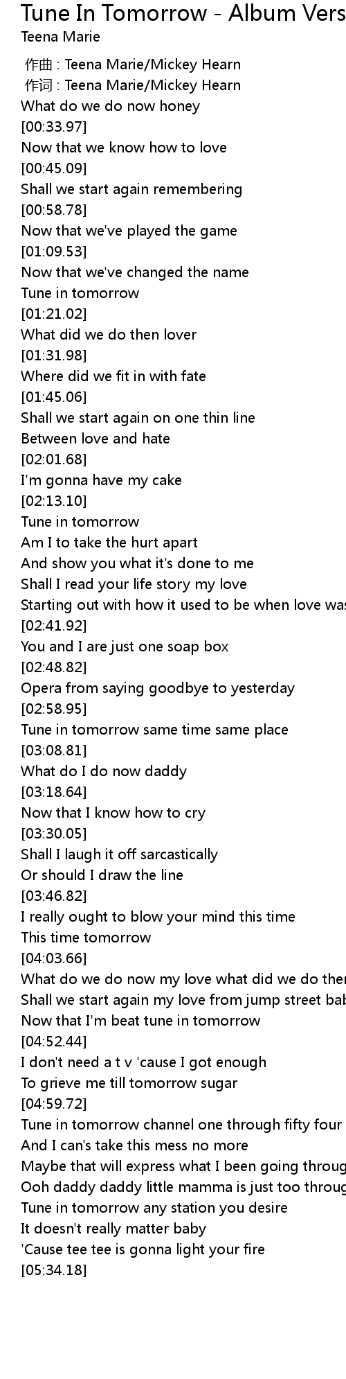 | [00:01.00] | 作词 : Teena Marie/Mickey Hearn |