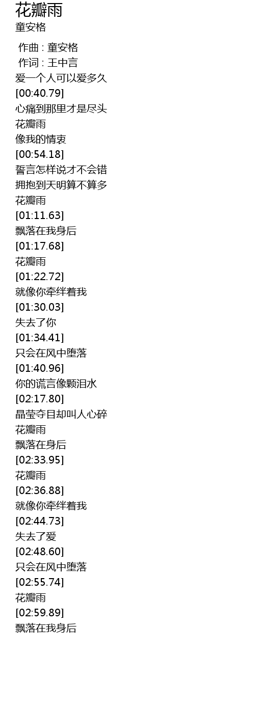 | [03:00.56] | piāo luò zài wǒ shēn hòu |