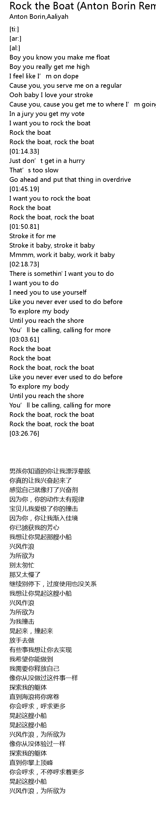 | [03:22.00] | Rock the boat, rock the boat |