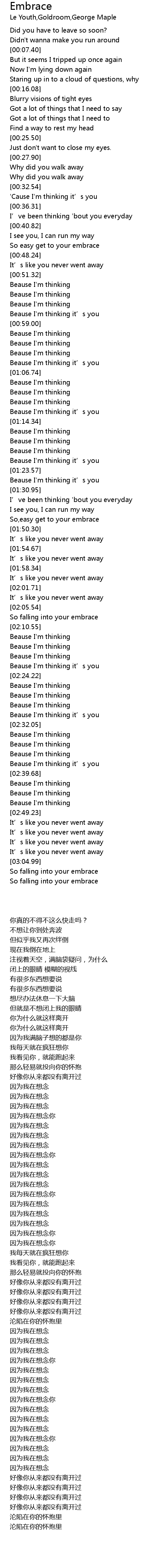 | [00:44.18] | So easy get to your embrace |