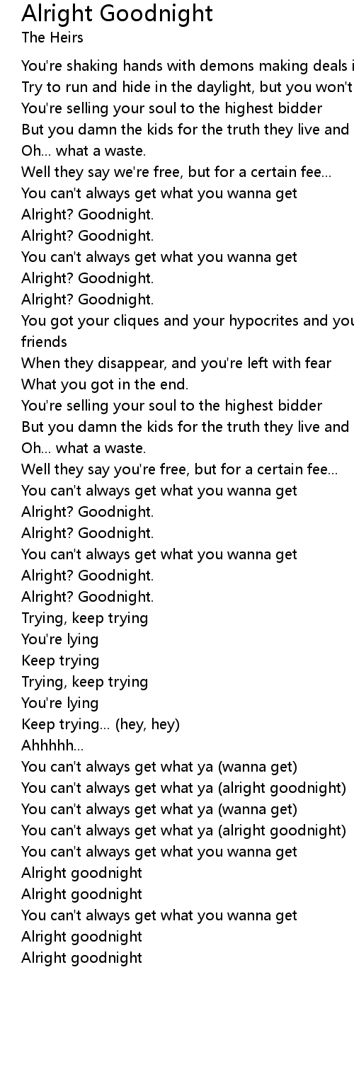 | [02:50.68] | You can't always get what ya (alright goodnight) |