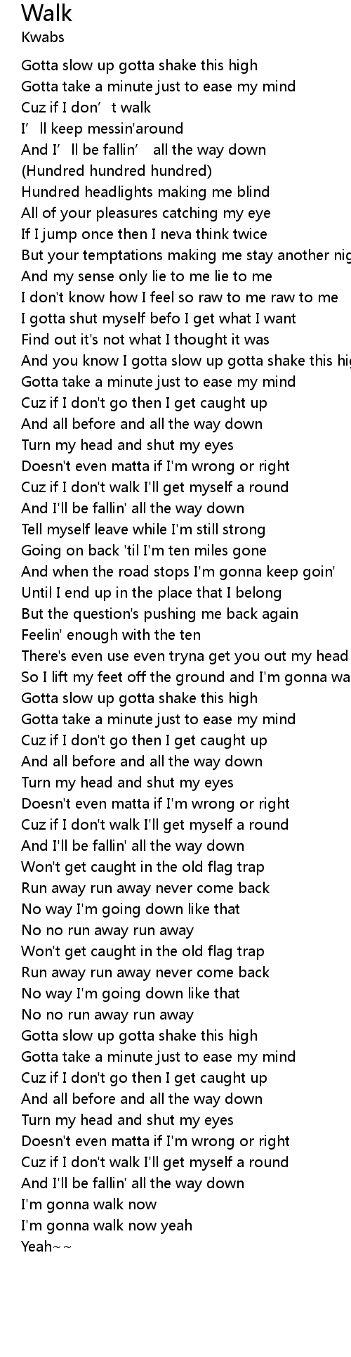 | [00:08.34] | Cuz if I don’t walk |