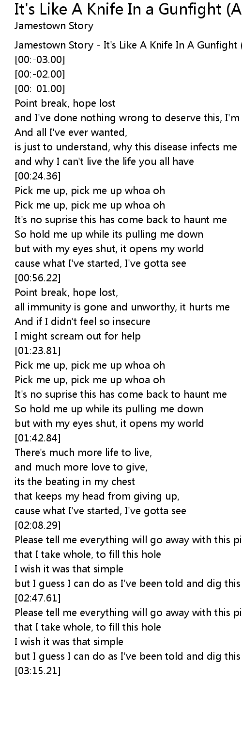 It's Like A Knife In a Gunfight (Acoustic) - unplug Lyrics