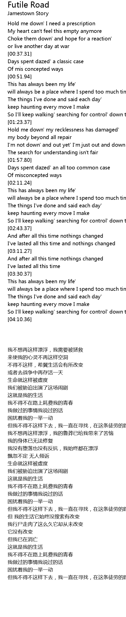 So I'll keep walking' searching for control' down this futile road |