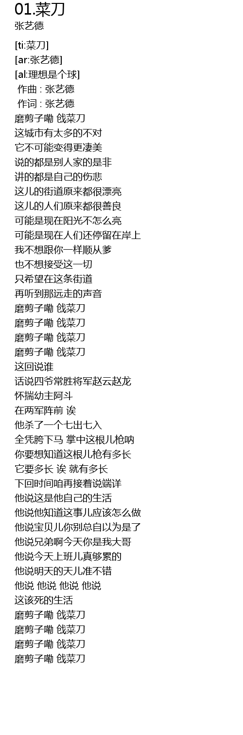 | [01:44.85] | 磨剪子嘞 戗菜刀 |