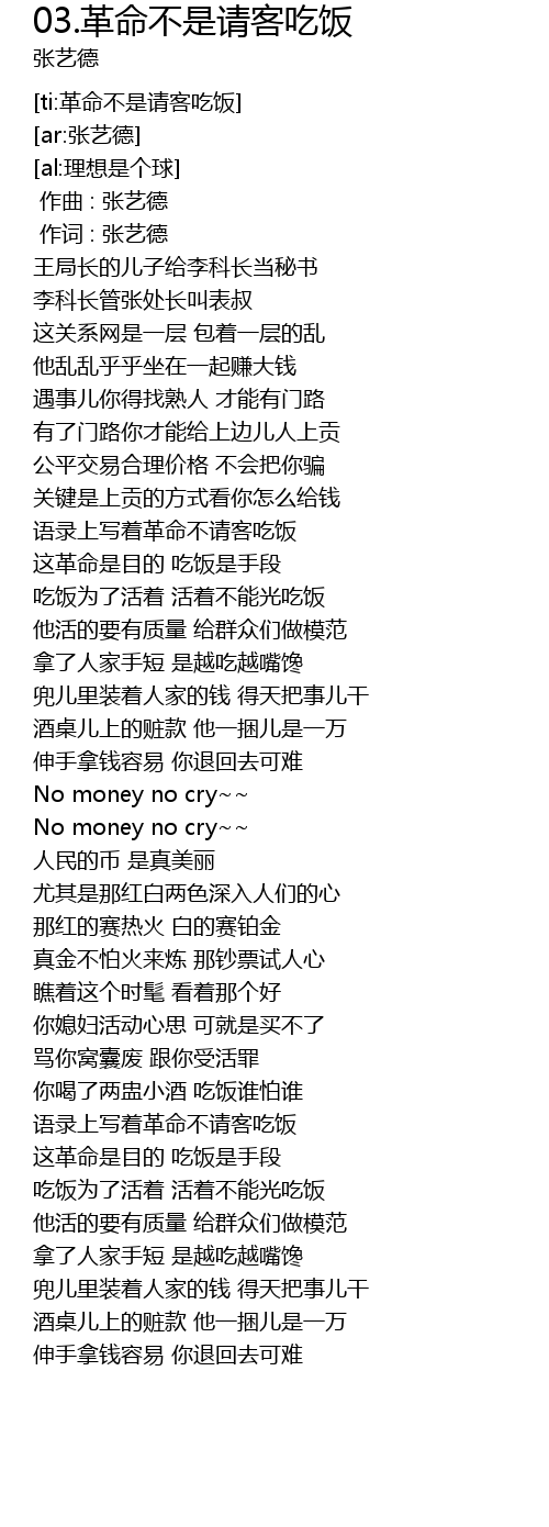 | [00:58.06] | 这革命是目的 吃饭是手段 |