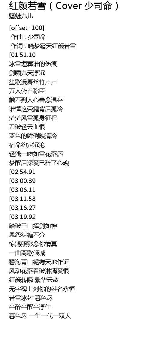 | [00:01.00] | 作词 : 晓梦霜天红颜若雪 |