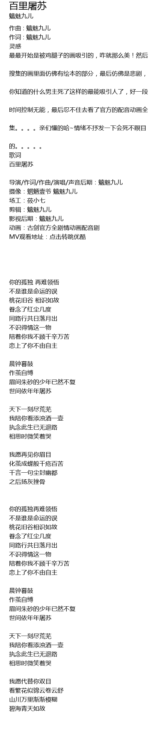 | 导演/作词/作曲/演唱/声音后期:魑魅九儿 | |