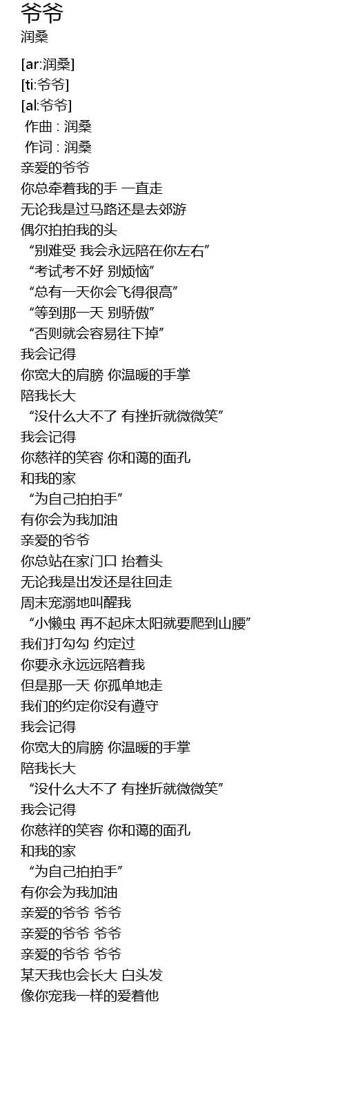 | [03:25.00] | 亲爱的爷爷 爷爷 |