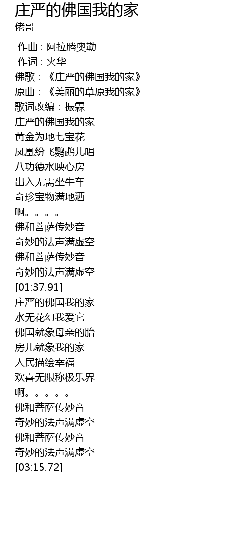 | [00:01.02] | 佛歌:《庄严的佛国我的家》 |