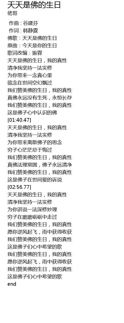 | [00:00.00] | 佛歌:天天是佛的生日 |