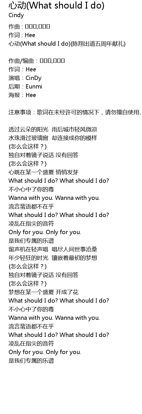 | Song | 心动(What should I do) |