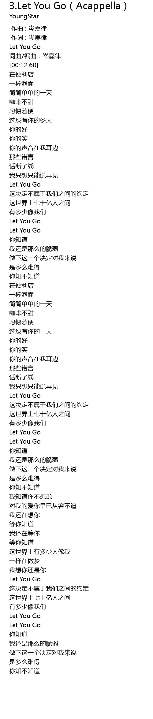 | [00:00.00] | 作曲 : 岑嘉律 |