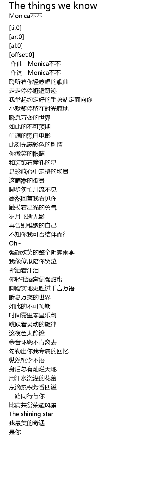 | [00:00.00] | zuò qǔ : Monica bù bù |
