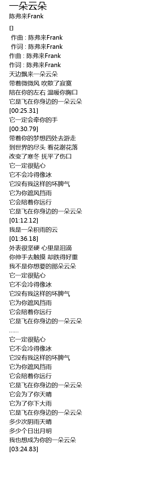 | [00:00.00] | 作曲 : 陈弗来Frank |
