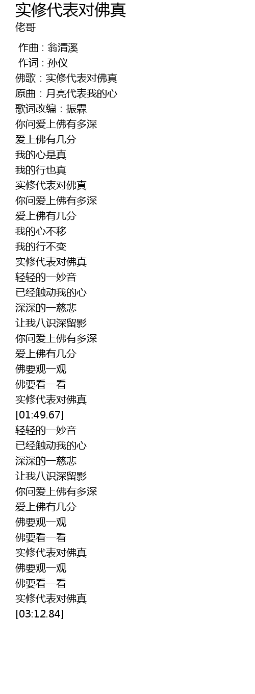 | [00:00.07] | 佛歌:实修代表对佛真 |