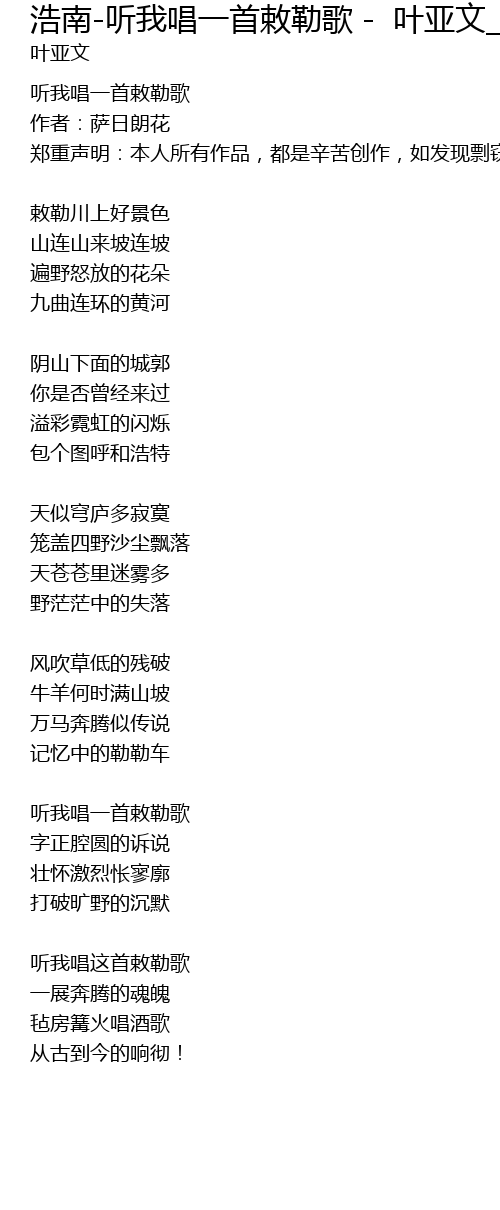 | Song | 浩南-听我唱一首敕勒歌 - 叶亚文_Remix |