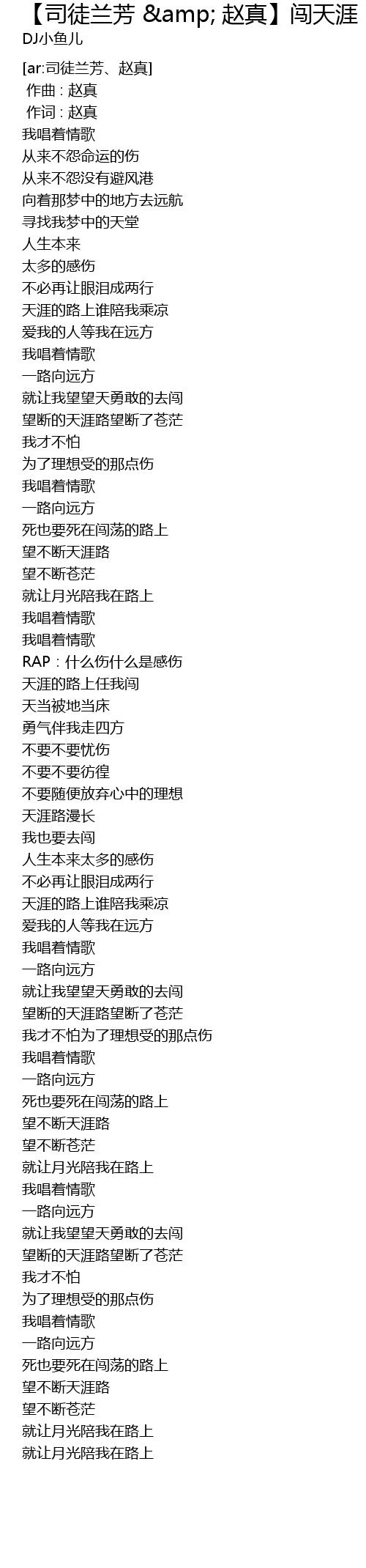 | [03:16.29] | 天涯的路上任我闯 |