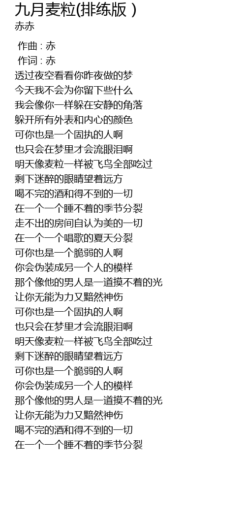 | [00:01.00] | 作词 : 赤 |