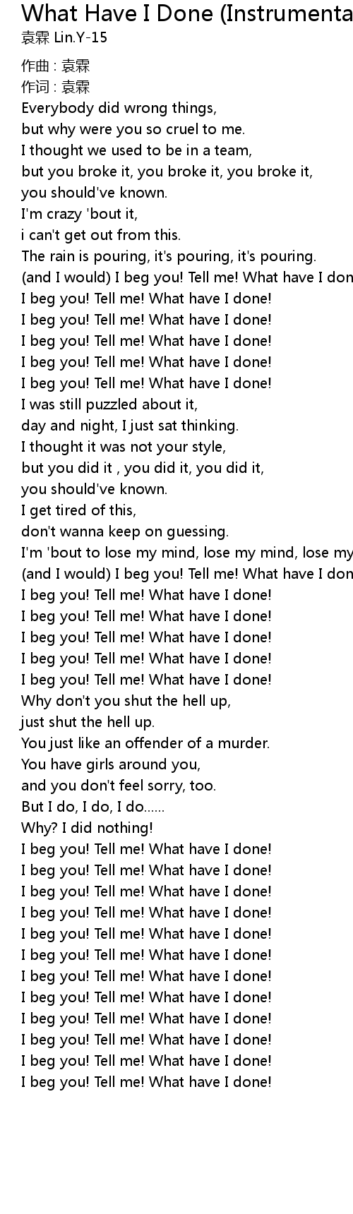 | Song | What Have I Done (Instrumental) |