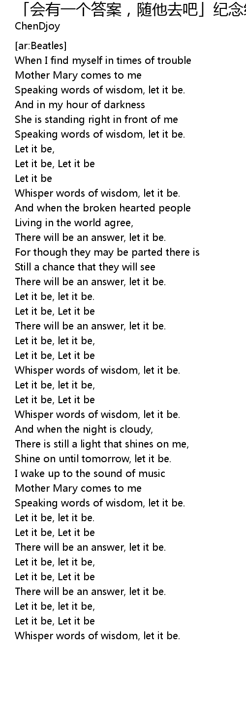 「会有一个答案,随他去吧」纪念约翰·列侬,致敬披头士经典 hui you yi ge da an, sui ta qu ba ji nian yue han lie nong, zhi jing pi tou shi jing dian Lyrics