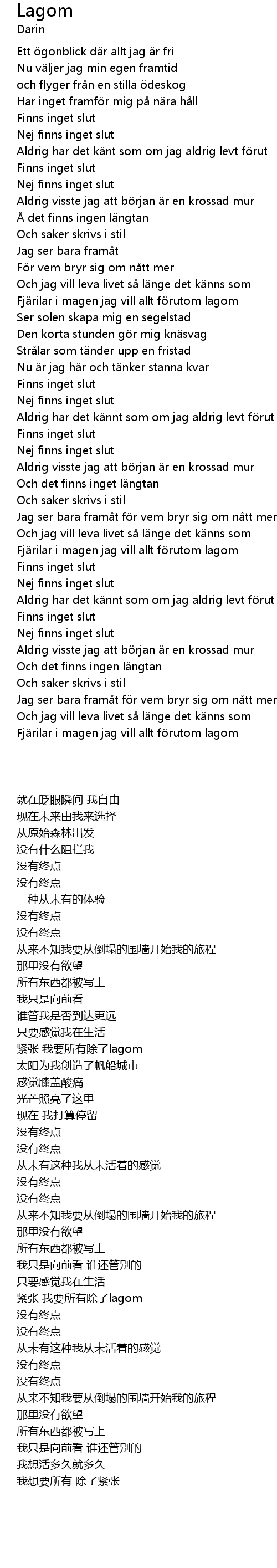| [02:52.39] | Fjärilar i magen jag vill allt förutom lagom |