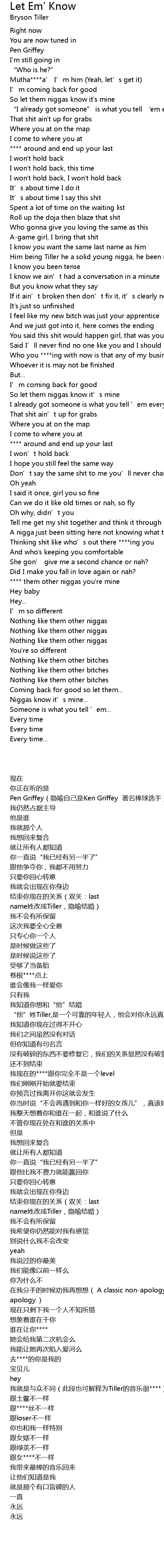| [01:06.28] | Him being Tiller he a solid young nigga, he been real ever since |