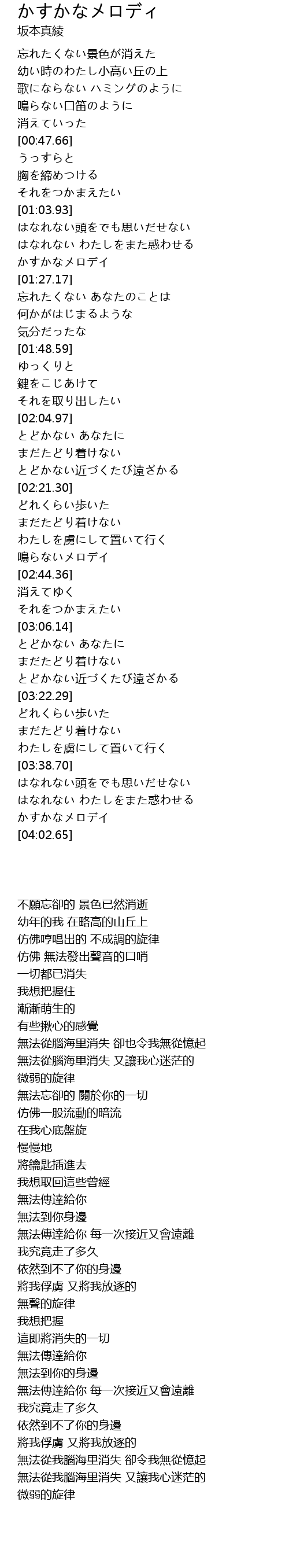 | [03:56.40] | かすかなメロデイ |