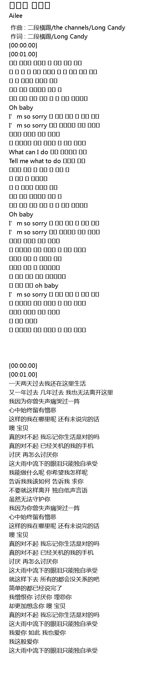 | [02:58.330] | I’m so sorry 널 잊고 사는 게 맞는 건지 |