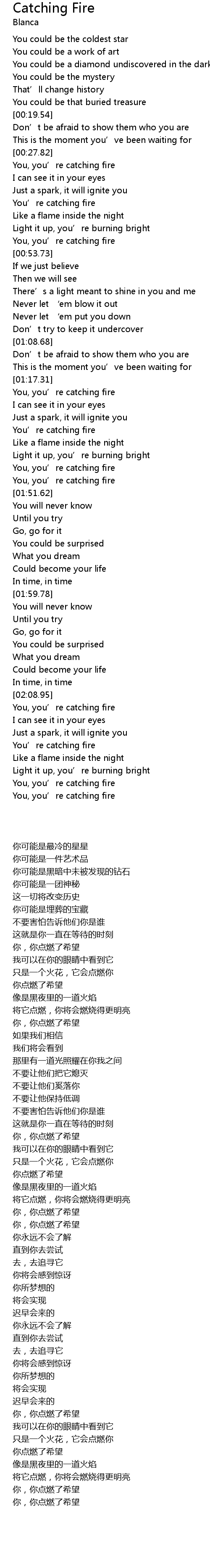 | [00:38.75] | You' re catching fire |