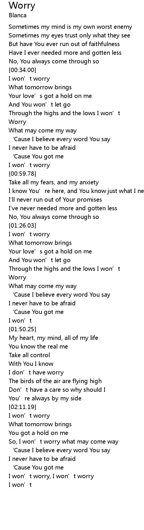 | [00:12.84] | Sometimes my mind is my own worst enemy |