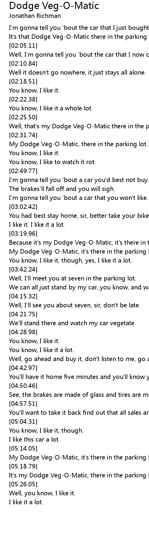 [02:32.80] My Dodge Veg-O-Matic, there in the parking lot.