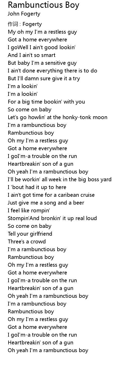 | Oh yeah I' m a rambunctious boy | |